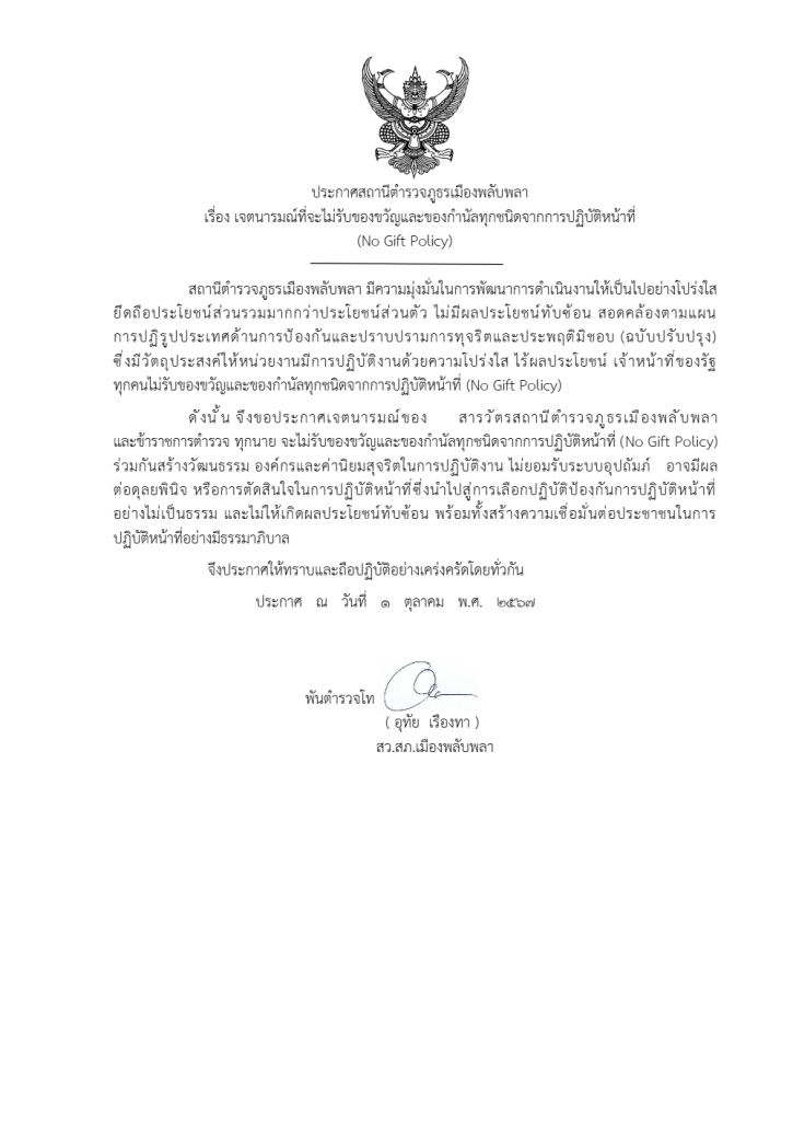 สภ.เมืองพลับพลา งดรับ งดให้ ของขวัญ