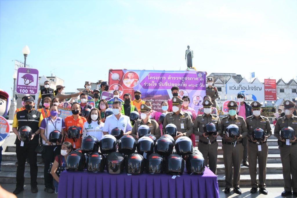 ตำรวจภูธรภาค 3 ร่วมใจ ขับขี่ปลอดภัย 365 วัน” รณรงค์สวมหมวกนิรภัย 100% เมาไม่ขับ ขับไม่เร็ว และข้ามถนนตรงทางม้าลาย ลดอุบัติเหตุลดเจ็บลดตาย พร้อมแจกหมวกกันน็อคให้ผู้เข้าร่วมกิจกรรม