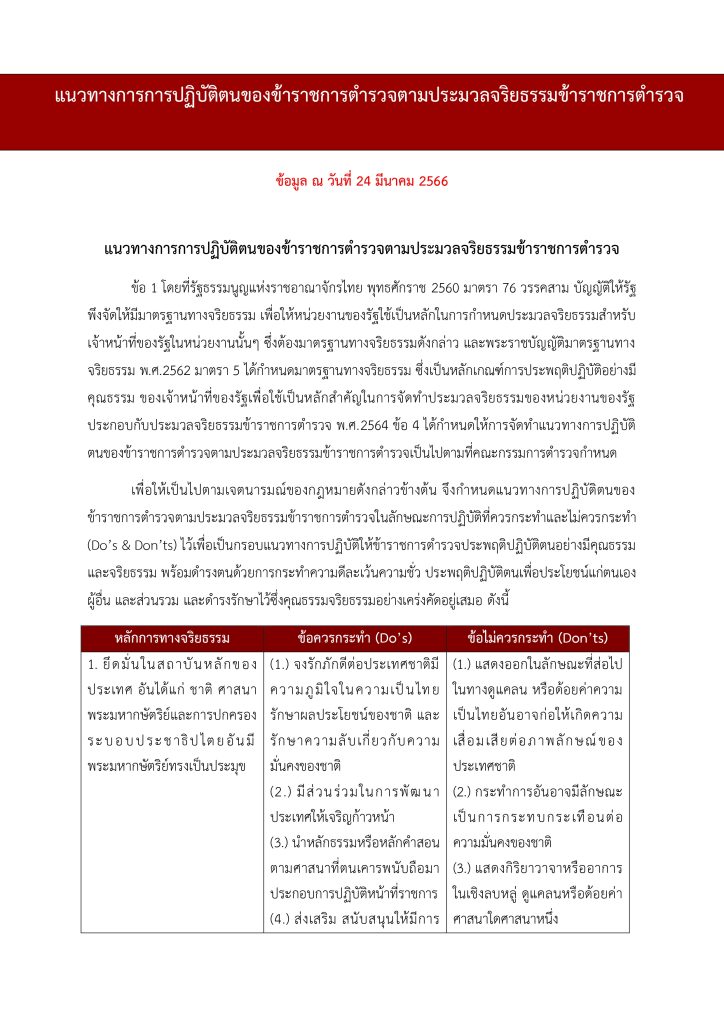 แนวทางการปฏิบัติตามประมวลจริยธรรม